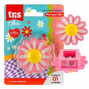 O apontador Margarida é muito divertido, com formato de flor e pompom antiestress! Seu corpo é emborrachado e maleável. Possui apontador duplo: normal e tamanho jumbo.