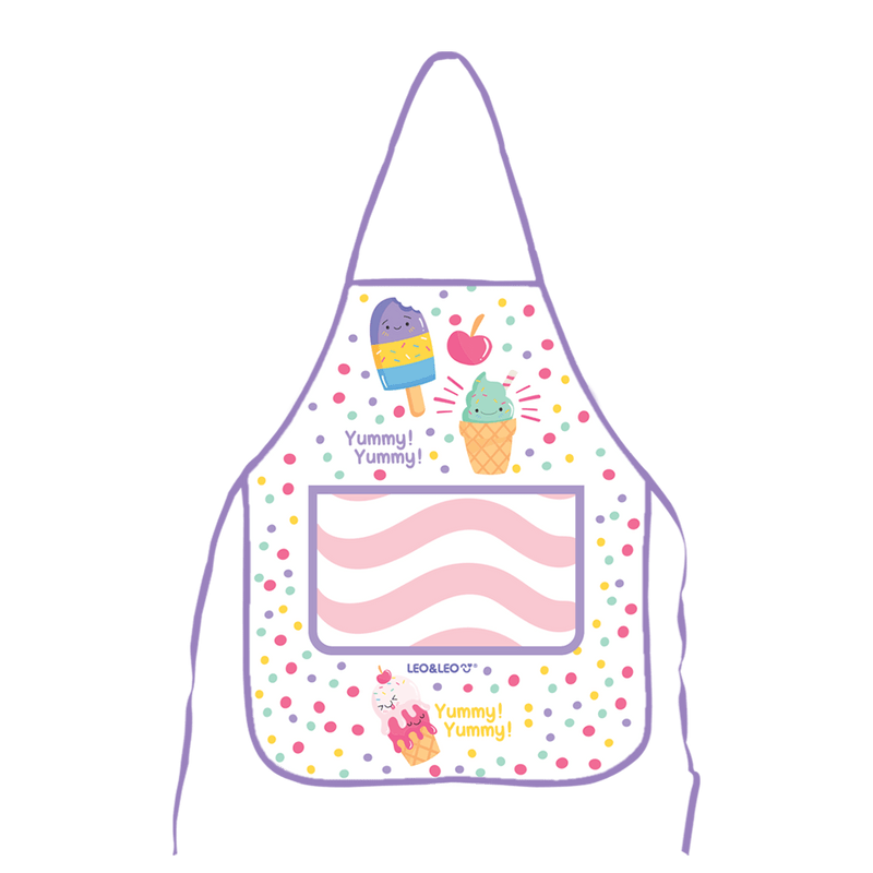 -O Avental Infantil Picolé Leo E Leo é perfeito para as crianças que adoram se divertir na cozinha, atividades artísticas e em atividades de ambiente escolar.