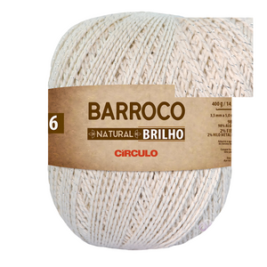 O Barroco Natural Brilho é o tradicional barroco natural, com o acréscimo de um lindo fiozinho de brilho. Barroco Natural é um fio 100% algodão puro, sem processos químicos; desenvolvido especialmente para a base de trabalhos manuais.