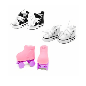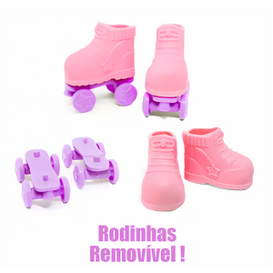 São três modelos disponíveis, dois tênis de cano alto que remetem à moda de rua e um par de patins rosa super fofo.