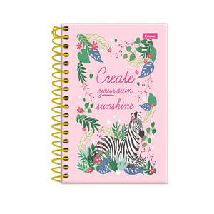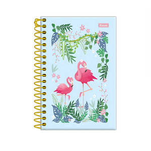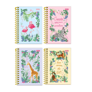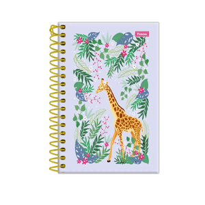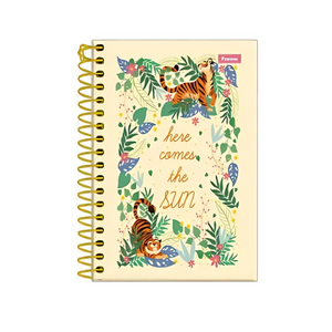 A Caderneta Espiral 1/8 Capa Dura Tropical Fever ilustra animais da floresta e suas estampas da fauna e flora, trazendo um suspiro para o dia a dia.