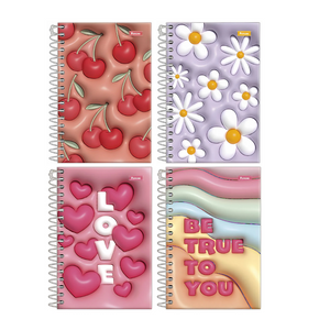 Caderneta 1/8 Capa Dura Nice Cream foi inspirado na tendência atual das "bolhas", trazendo uma estética de volumes, como balões, em suas capas. Além disso, apresenta uma paleta de cores harmoniosa e agradável, refletindo um visual moderno e atrativo.
