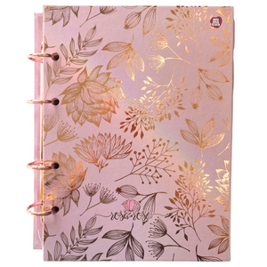 Suas argolas metálicas garantem a durabilidade e permitem uma abertura completa das folhas, facilitando a escrita e a organização. O design moderno e a cor delicada deixam seu material escolar ainda mais charmoso.