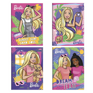 -O Caderno Brochura e Brochurão Capa Dura Barbie expressa a tendência fashion, lifestyle e muita diversão. Busca retratar cores alegres e a própria personagem em todas as suas capas.