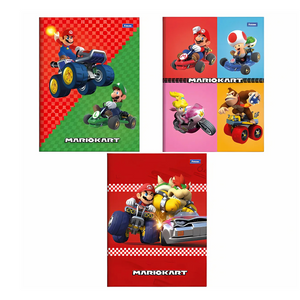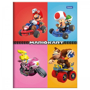 -Os Cadernos Brochura e Brochurão Capa Dura Super Mario busca retratar o universo do personagem encanador fictício Mario e seus amigos de jornada.