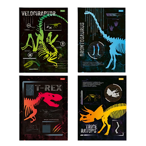 -Os Cadernos brochurão Sauros possui estampas que mesclam o clássico tema dos dinos com o futurístico mundo gamer do metaverso, tendo como resultado capas atuais e alinhadas com o gosto da nova geração de jovens.
