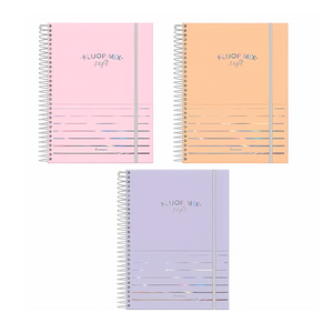 -O Caderno College Capa PP Fluor Mix Soft traz cores pastéis que são tendências o ano todo, modernidade e leveza - carrega consigo um design clean e sutil.