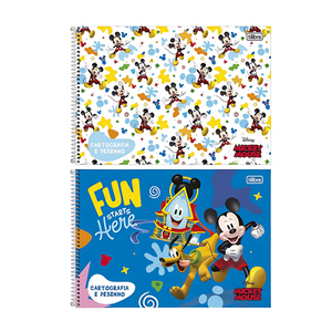 -O Caderno de Cartografia e Desenho Espiral Capa Dura Mickey 80 Folhas possui capa dura com a parte interna decorada, folha de adesivos e folhas sem pautas. Ideal para o dia a dia na escola, auxiliando o aluno nas atividades de desenho e colorir.