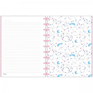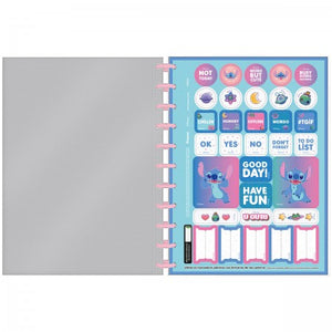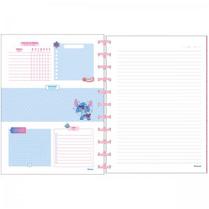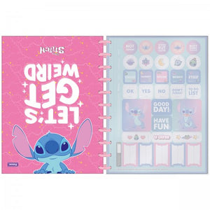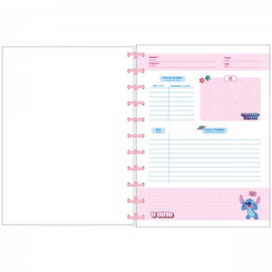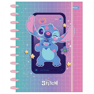 -O Stitch (também conhecido como Experimento 626) é um dos personagens mais queridos e divertidos do universo da Disney. O Caderno Discbook busca retratar o personagem no mundo das redes sociais, com elementos e cores características em sua composição.