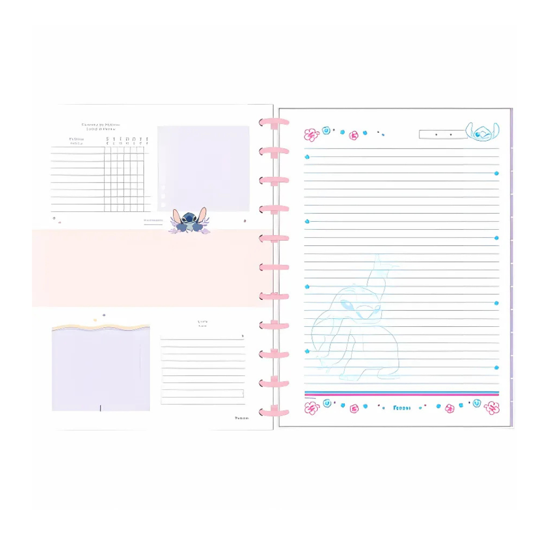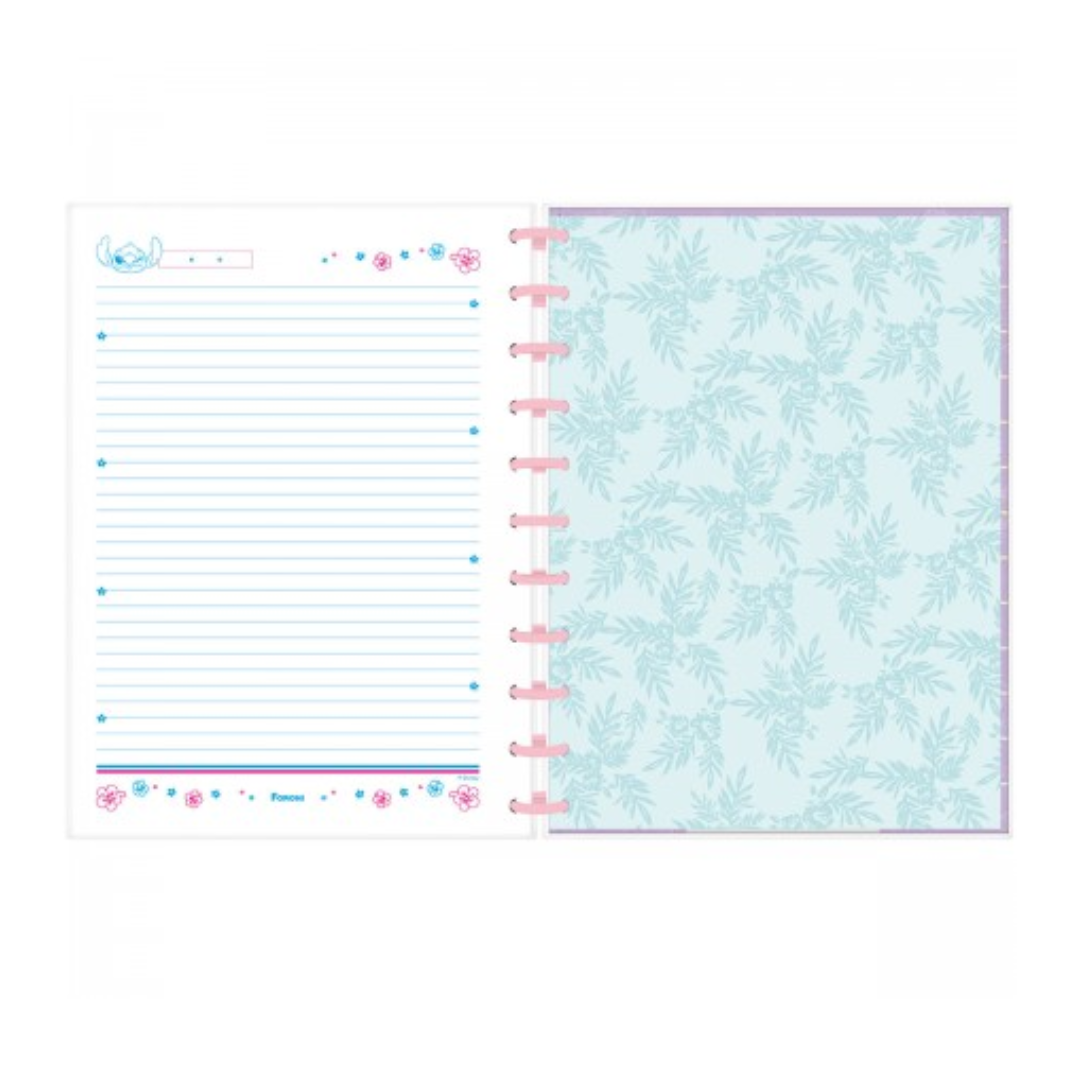 O Stitch (também conhecido como Experimento 626) é um dos personagens mais queridos e divertidos do universo da Disney. O Caderno Discbook busca retratar o personagem no mundo das redes sociais, com elementos e cores características em sua composição.