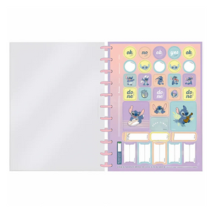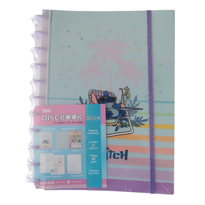 O Stitch (também conhecido como Experimento 626) é um dos personagens mais queridos e divertidos do universo da Disney. O Caderno Discbook busca retratar o personagem no mundo das redes sociais, com elementos e cores características em sua composição.