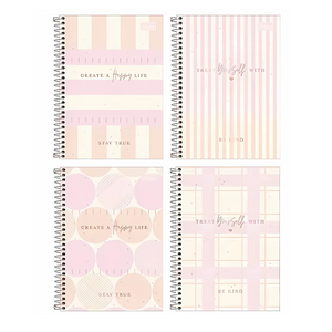 O Caderno Espiral Capa Dura 1/4 Soho 80 Folhas possui capa dura com detalhe metalizado, parte interna decorada, folhas pautadas decoradas e espiral colorido. Ideal para o dia a dia.