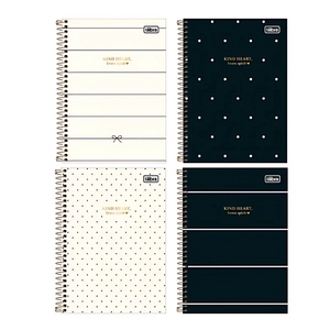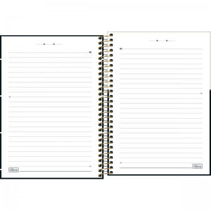 -O Caderno Espiral Capa Dura 1/4 West Village 80 Folhas possui capa dura com detalhe metalizado, parte interna decorada, folhas pautadas decoradas e espiral colorido.