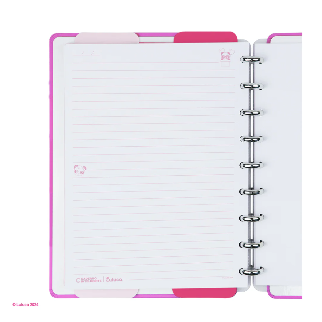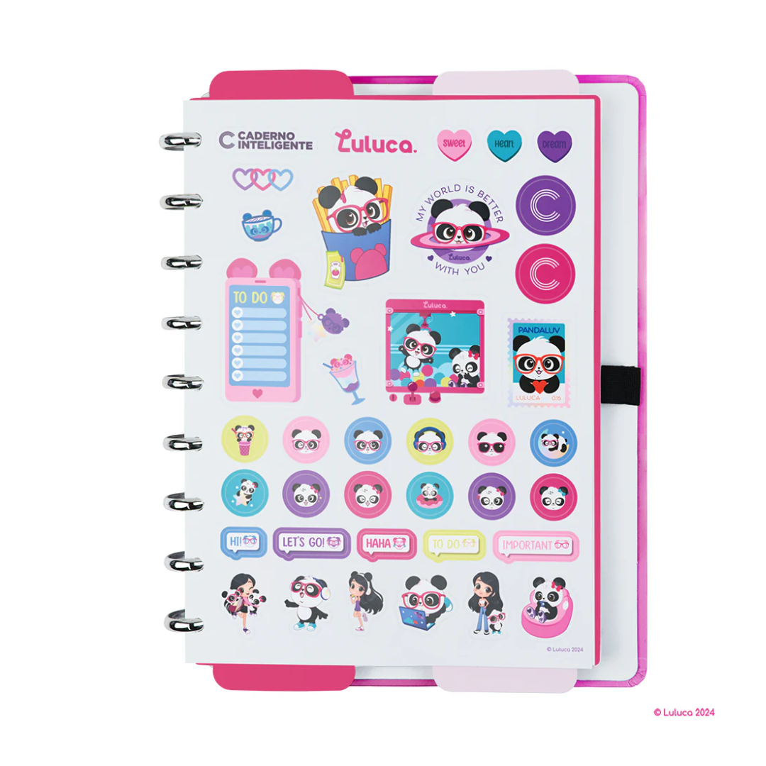 Nova versão está totalmente repaginada, com capa exclusiva em acabamento PREMIUM em verniz, hotstamping holográfico e TOQUE aveludado, esse novo CADERNO INTELIGENTE Pandalu Glow by Luluca com certeza será a nova paixão dos pandinhas.Suas anotações ficarão muitos mais divertidas e criativas, além de super fofos, o pandinha é o bichinho favorito da influencer Luluca.