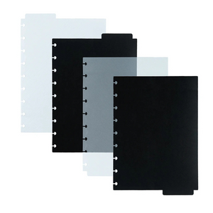 - 04 divisórias com abas para identificação (02 pretas e 02 transparentes)
