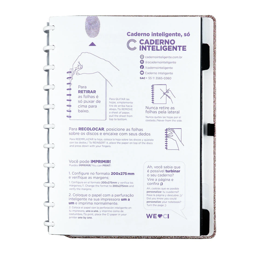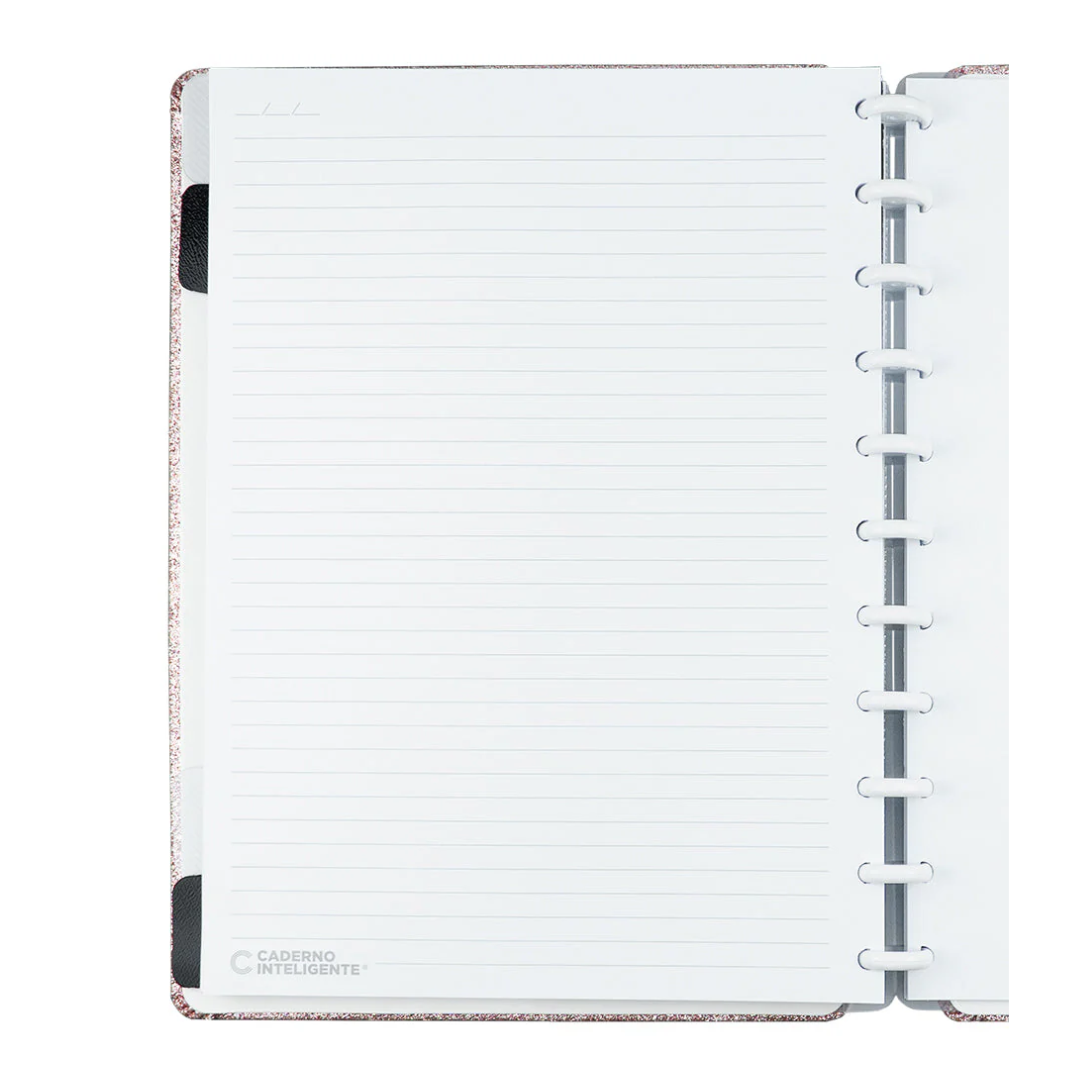 Elegante, premium e cheio de personalidade. O Caderno Let's Glitter Rose é a mistura harmônica da cor mais amada por todos nós com o charme do brilho perfeito.