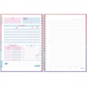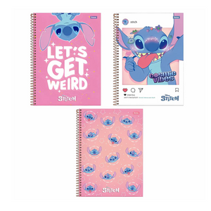 -O Stitch (também conhecido como Experimento 626) é um dos personagens mais queridos e divertidos do universo da Disney. O Caderno Universitário Capa Dura busca retratar o personagem no mundo das redes sociais, com elementos e cores características em sua composição.
