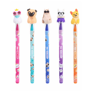 A caneta esferográfica Tris Focinhos possui toppers fofíssimos de pets estilosos! Sua ponta é média, 1.0mm e seu corpo é estampado.