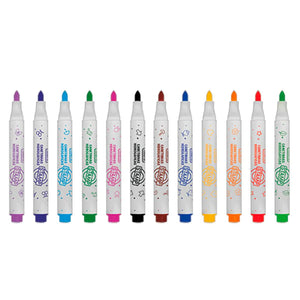 -O produto traz 12 cores vivas e vibrantes para desenhos e textos. Com tinta à base de água, ponta resistente e macia, você terá conforto, precisão e controle para fazer traços uniformes e criativos.