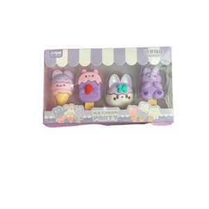 KIT COM 4 BORRACHAS EM FORMATO DE SORVETE BORRACHAS APAGAVEIS E DECORATIVAS