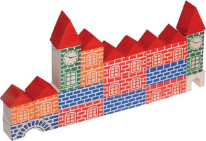 Com 42 peças em madeira reflorestada o pequeno engenheiro desenvolve o raciocínio logico, a imaginação e a criatividade.