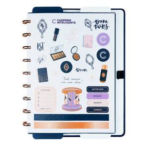 O Caderno Inteligente® BT vem acompanhado por uma cartela de adesivos inspirados na jornada Bruna Tavares e um face chart EXCLUSIVO para documentar o passo a passo da sua maquiagem. A vantagem de reposicionar a folha permite que você a guarde onde preferir.
