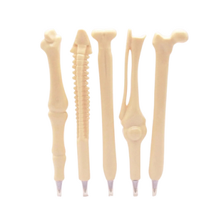 Com 5 opções de imitações de ossos, sua escrita é esferográfica de ponta grossa. Todas as opções possuem tinta de cor preta.