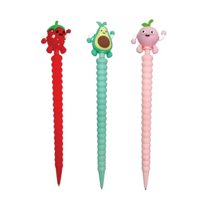 A Lapiseira 0.7mm Frutinhas possui o corpo emborrachado em gominhos e ponteira com formato divertido