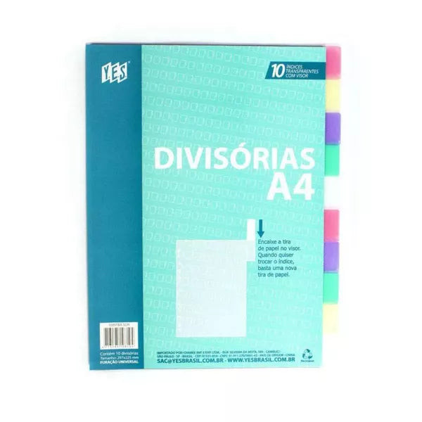 Divisoria A4 YES Transparente Colorida c/ 10 divisões