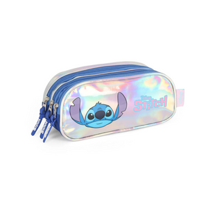 Estojo 3 Divisórias Escolar Stitch Holográfico Prata - Luxcel