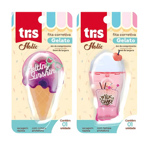 A coleção Docinho traz para as papelarias produtos inspirados nas delícias do universo da confeitaria! Donuts, balinhas, sorvetes e muito mais! É pura fofura! Com formatos de milkshake a sorvete, a fita corretiva Gelato vai adoçar sua rotina. Com tampa protetora e secagem rápida! Dimensões da fita: 6mx5mm