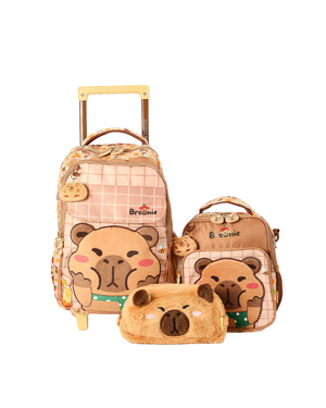 Kit Capivara Pelúcia Mochila, Lancheira e Estojo.
