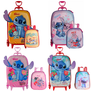 Kit Diplomata Stitch Mochila com Rodas e Lancheira