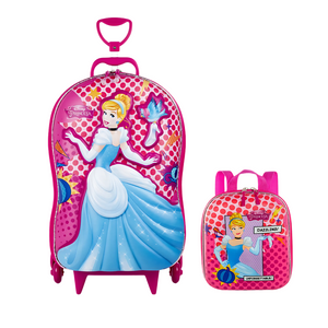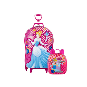 Kit Diplomata Cinderela Rosa Mochila com Rodas e Lancheira