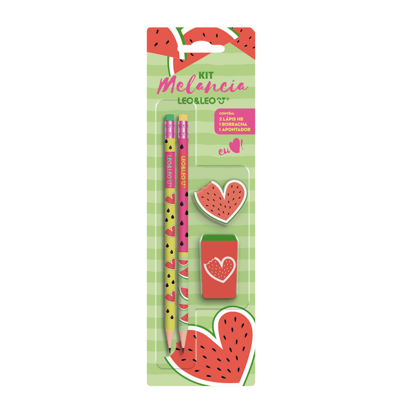 O Kit Lápis HB Melancia da LeoeLeo é perfeito para os amantes de frutas e para adicionar um toque divertido à sua papelaria. O kit inclui um lápis HB com estampa de melancia, um apontador e uma borracha, proporcionando todos os itens essenciais para suas atividades de escrita e desenho.