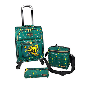 Kit Malinha Escolar Samsonite . Mochila toda confeccionada em material de lona personalizada impermeável material super leve sem estrutura que protege os materiais, diminuindo o risco de quebra. Abertura em pé em formato mochila, possui compartimentos internos, compartimentos externos com bolsos para facilitar a organização. Suporte lateral para garrafa com tela e zíper podendo ser guardado. Sistema de rodinhas de silicone preparados para aguentar o peso dos materiais. Puxador em metal resistente com haste dupla e estágios de regulagem de altura podendo ser adaptado para crianças de diversos tamanho. Lancheira Térmica grande, possui alça transversal fixa e alça carona podendo encaixar sobre a mochila. Porta lápis simples uma repartição. Ideal para crianças que possuem muito material, estudo integral e diversas idades. Medidas se encaixam no padrão ANAC podendo ser usado como mala de bordo 55 x 35 x 25.
