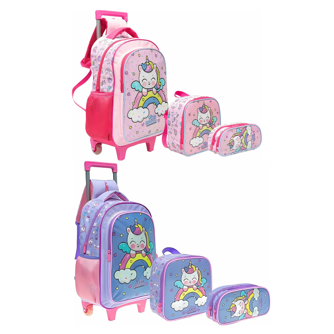 Kit Mochila Rodinha Unicórnio 3 peças Yeep