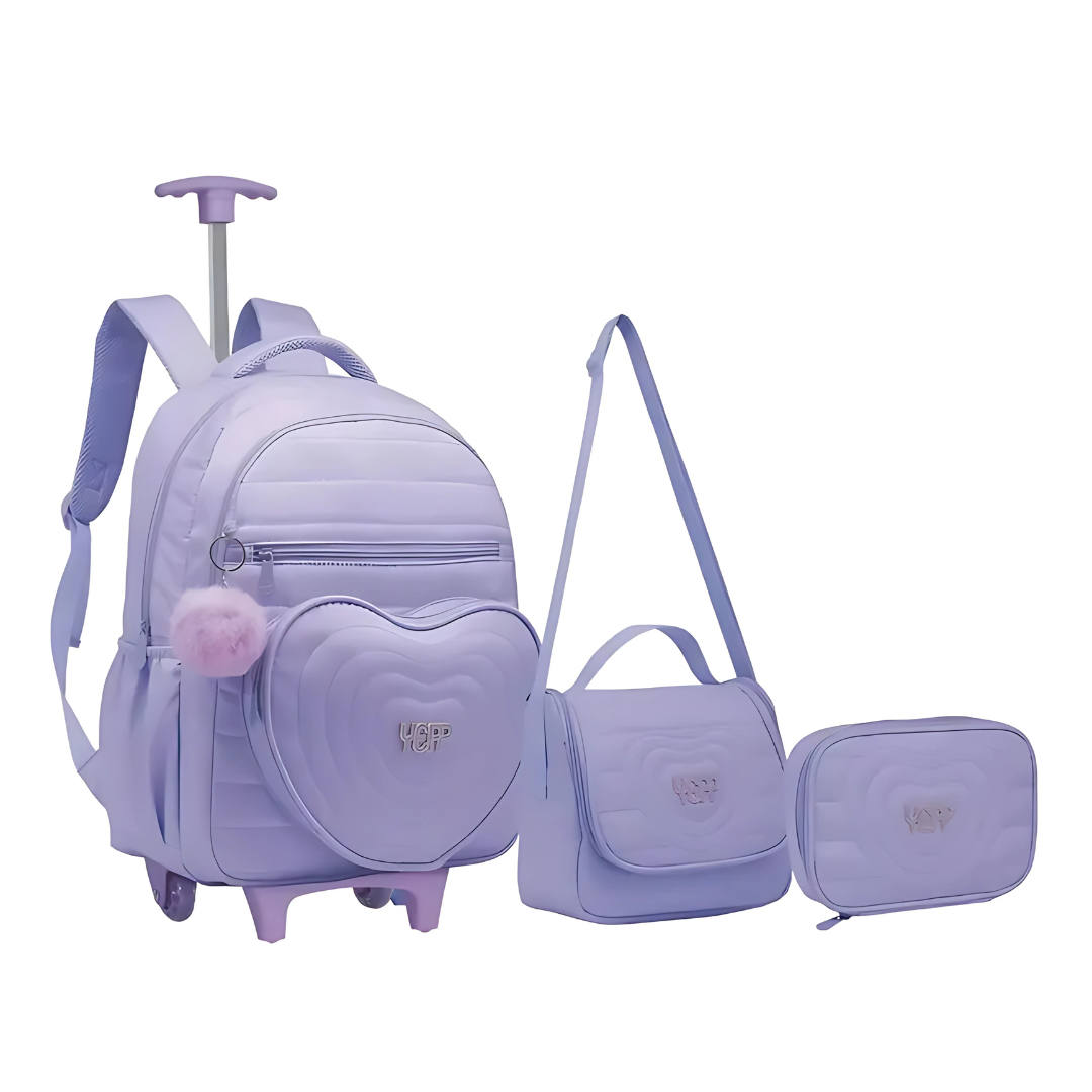 Kit Mochila De Rodinhas Coração Lilás - Yeep