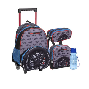 Kit Mochila de Rodinhas/Lancheira/Estojo e Garrafa Fast Turbo- Nova Rio