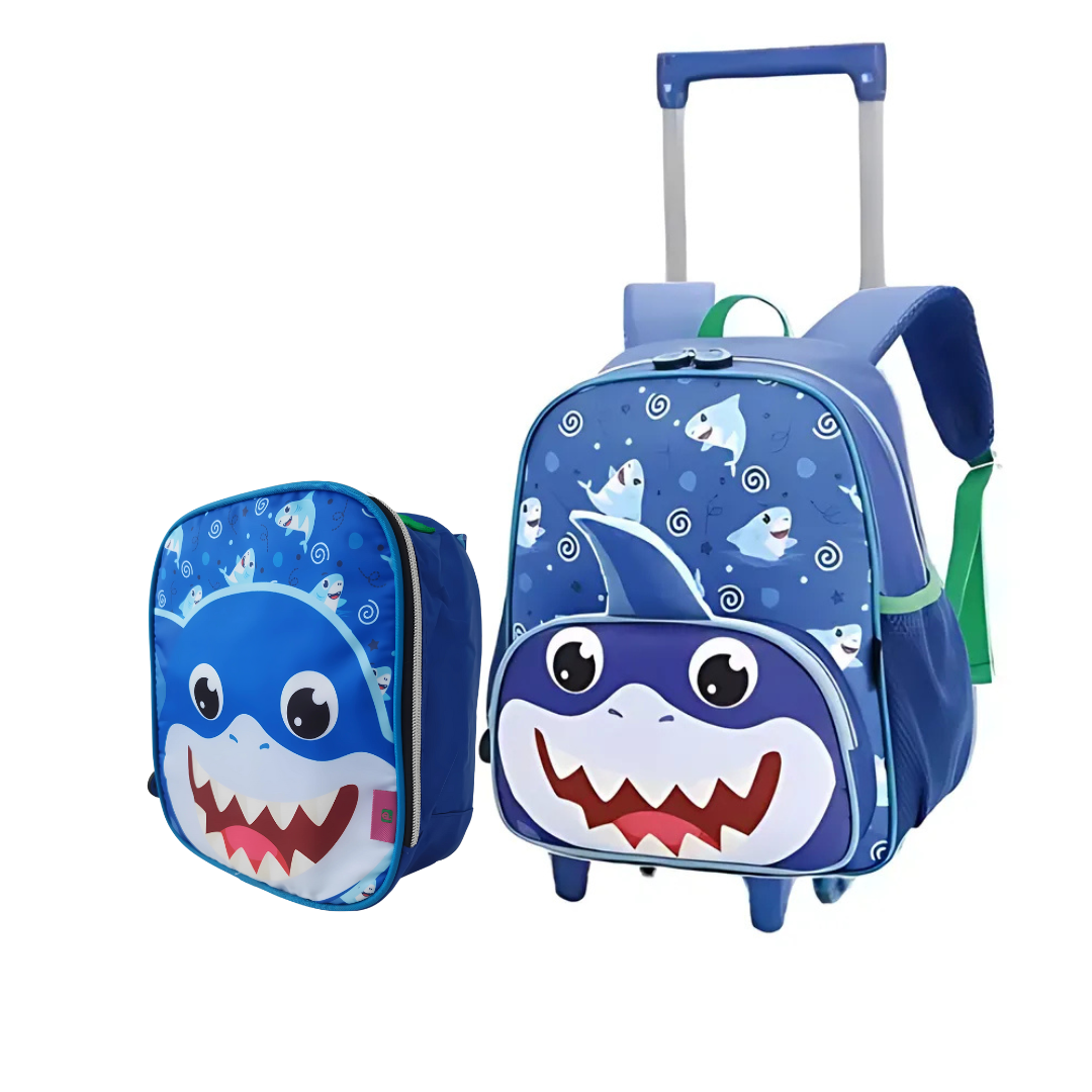 Mochila Infantil com Rodinhas e Lancheira Baby Tubarão MCK4945 Azul - Ponto Verde