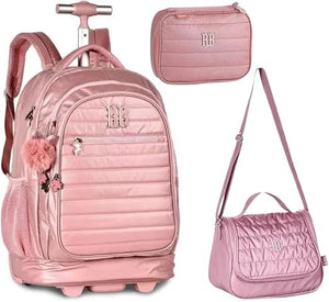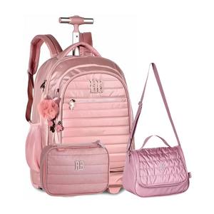 Kit Mochila Rodinhas Rebecca Bonbon + Lancheira +Estojo Rosa