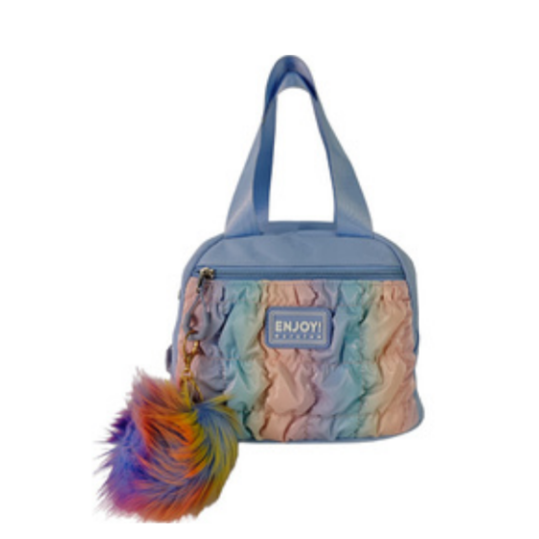 -Detalhe frontal: peva matelado enrugado com lastex, efeito tie-dye arco-íris, cor pastel.
