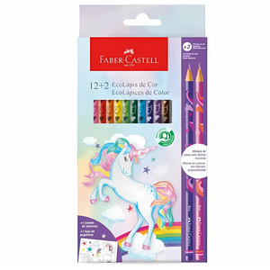 Lápis de Cor Faber-Castell 12 cores+ 2 Misturinha Unicórnio