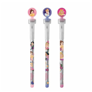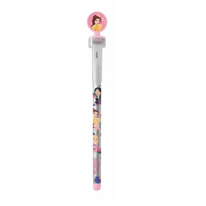 Lapiseira troca ponta das Princesas, prática e ainda com carimbos dos personagens.