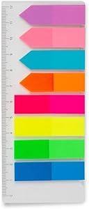 - Ideal para marcar páginas, ressaltar textos e classificar documentos para arquivo; possuem cores semi-transparentes que não cobrem a superfície onde são aplicados; permitem a escrita de caneta e lápis. São reposicionáveis e de fácil aplicação; acompanha régua.