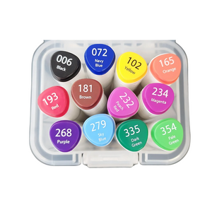O Dual Marker 12 Cores é uma linha de marcadores à base de álcool indicados tanto para uso artístico quanto para estudantes e profissionais. Permanentes e muito versáteis, podem ser aplicados em cartões, plásticos, cerâmicas, madeiras, metais e papéis - preferencialmente de gramaturas altas ou próprios para marcadores.