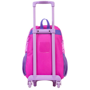 Uma mochila com uma linda estampa colorida, produzida em um resistente poliéster para te acompanhar na escola. As alças espumadas possuem regulagem, para o melhor ajuste no corpo, e o carrinho com rodinhas torna o transporte mais fácil e leve. Os bolsos laterais em redinha acompanham a paleta de cor da Mochilete, e o bolso frontal possui corações com glitter em um material holográfico.