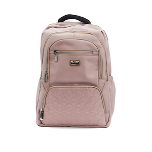 - Alças de costas acolchoadas e bolso frontal bordado.