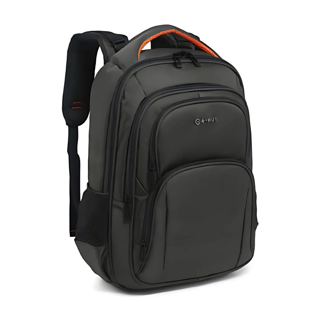 Mochila de costas HUB possui 4 bolsos frontais e 2 bolsos laterais. Possui espaço para carregar notebook e alças reforçadas nas costas.