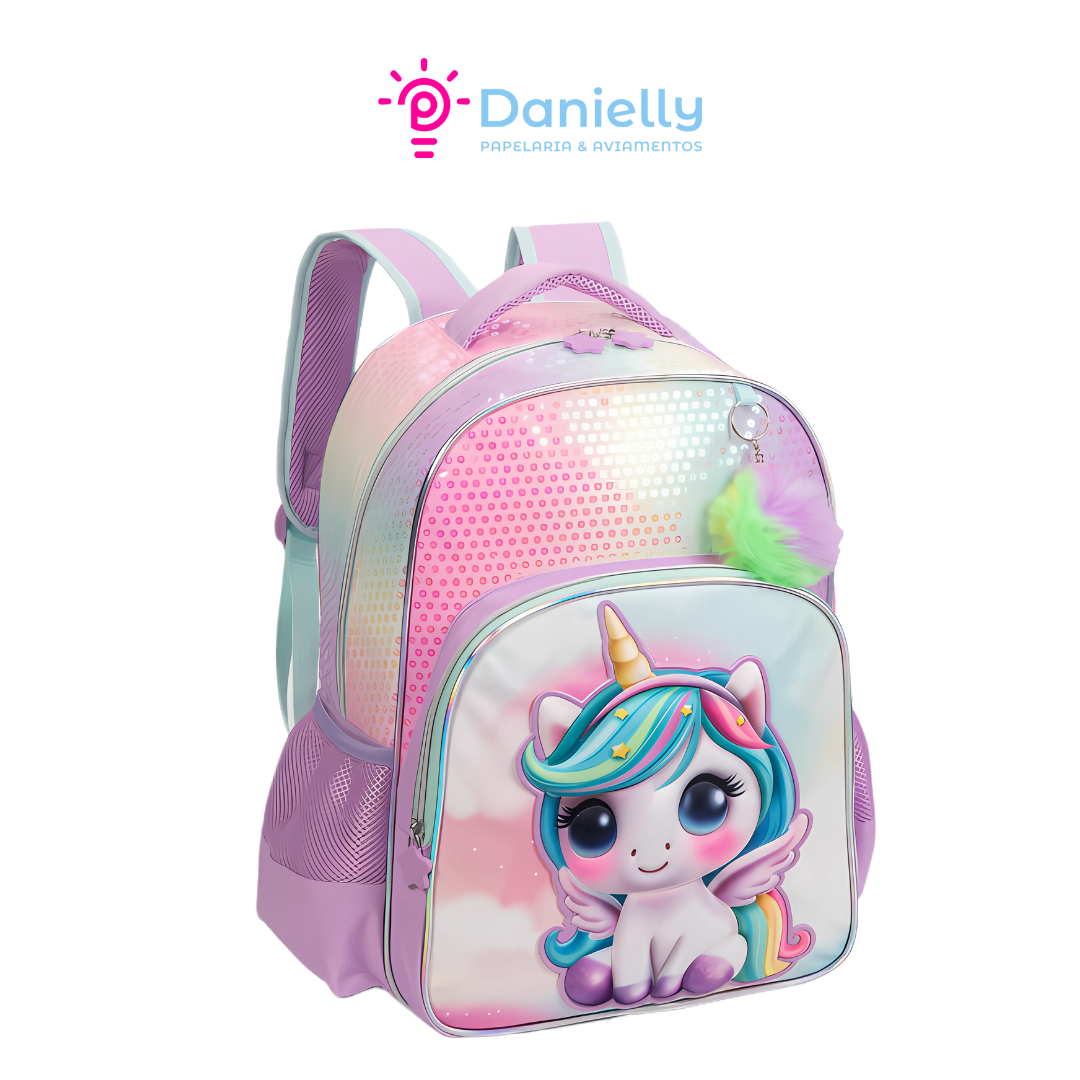 -Mochila Unicórnio com detalhes em paitê e 3D, a criançada vai amar!